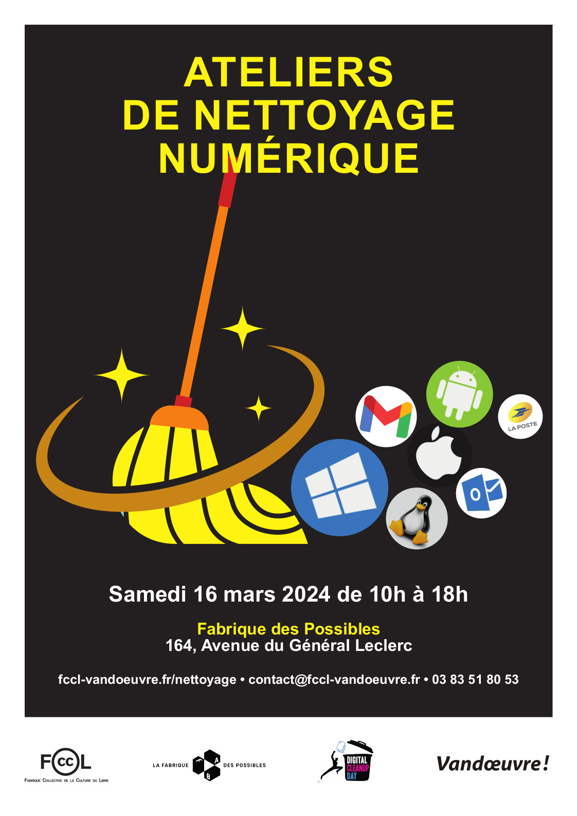 - Atelier Nettoyer ses courriels, de 10 h à 13 h