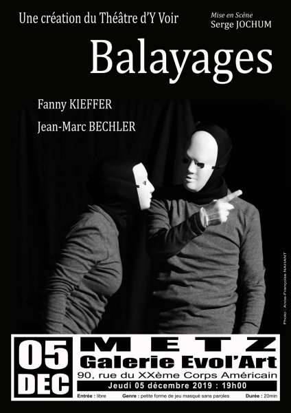 "Balayages" est une petite forme de jeu masqué sans parole, 20 minutes d’humour tendre et décalé.