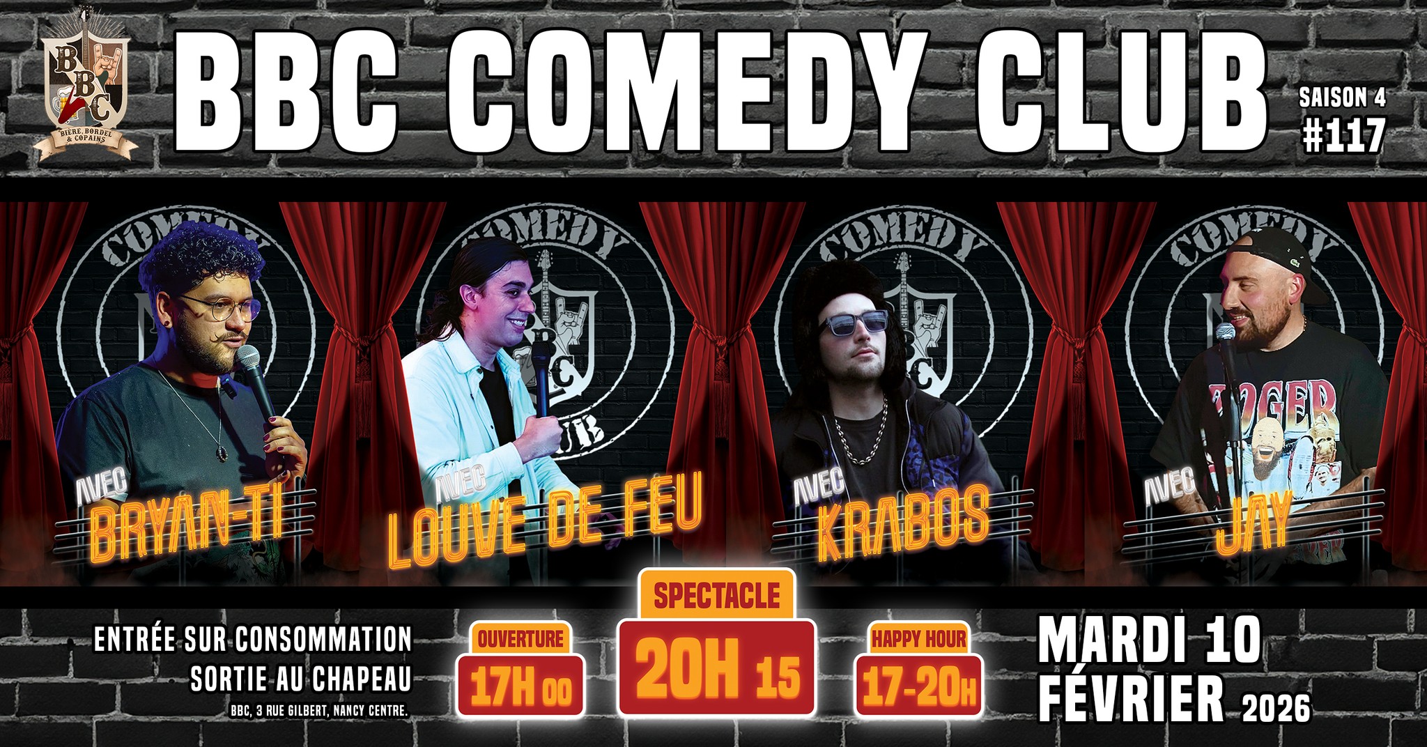 🎤🤣 Édition #117 du BBC Comedy Club (saison 4) – Mardi 10 février 2026 à 20h15 !