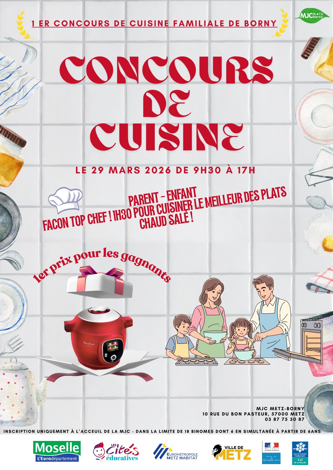 La MJC de Metz-Borny organise le 29 mars prochain un grand concours de cuisine inspiré du format « Top Chef », réunissant 18 binômes qui s’affronteront tout au long de la journée à travers différentes épreuves culinaires.