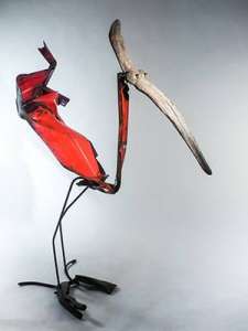 A quatre pattes ou sur deux, ce bestiaire imaginaire est né de l’alliance de matériaux de déchetterie. De ses sculptures aux silhouettes épurées et aux regards remplis d’humanité se dégage une douceur singulière, presque irréelle.