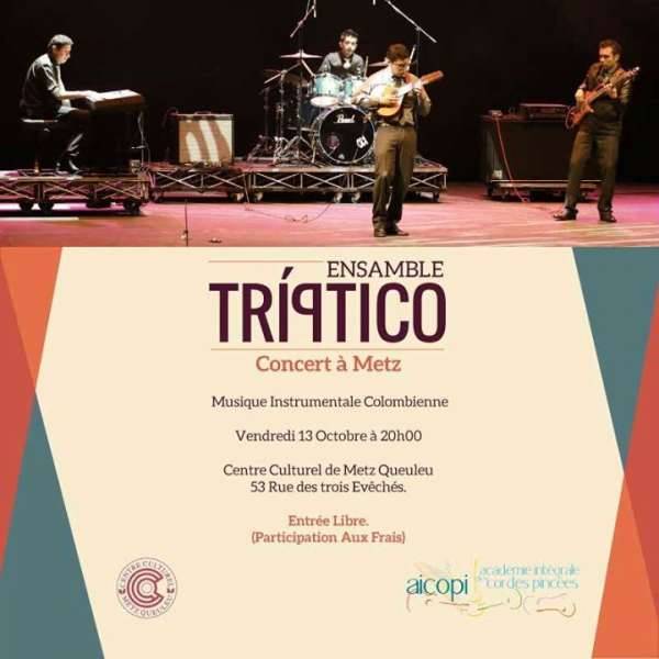 ENSAMBLE TRÍPTICO est un groupe instrumental colombien conformé par bandola, piano, basse électrique et batterie. Instruments de différentes traditions musicales et qui crée une sonorité dans laquelle les racines colombiennes dialoguent avec les sons contemporains.