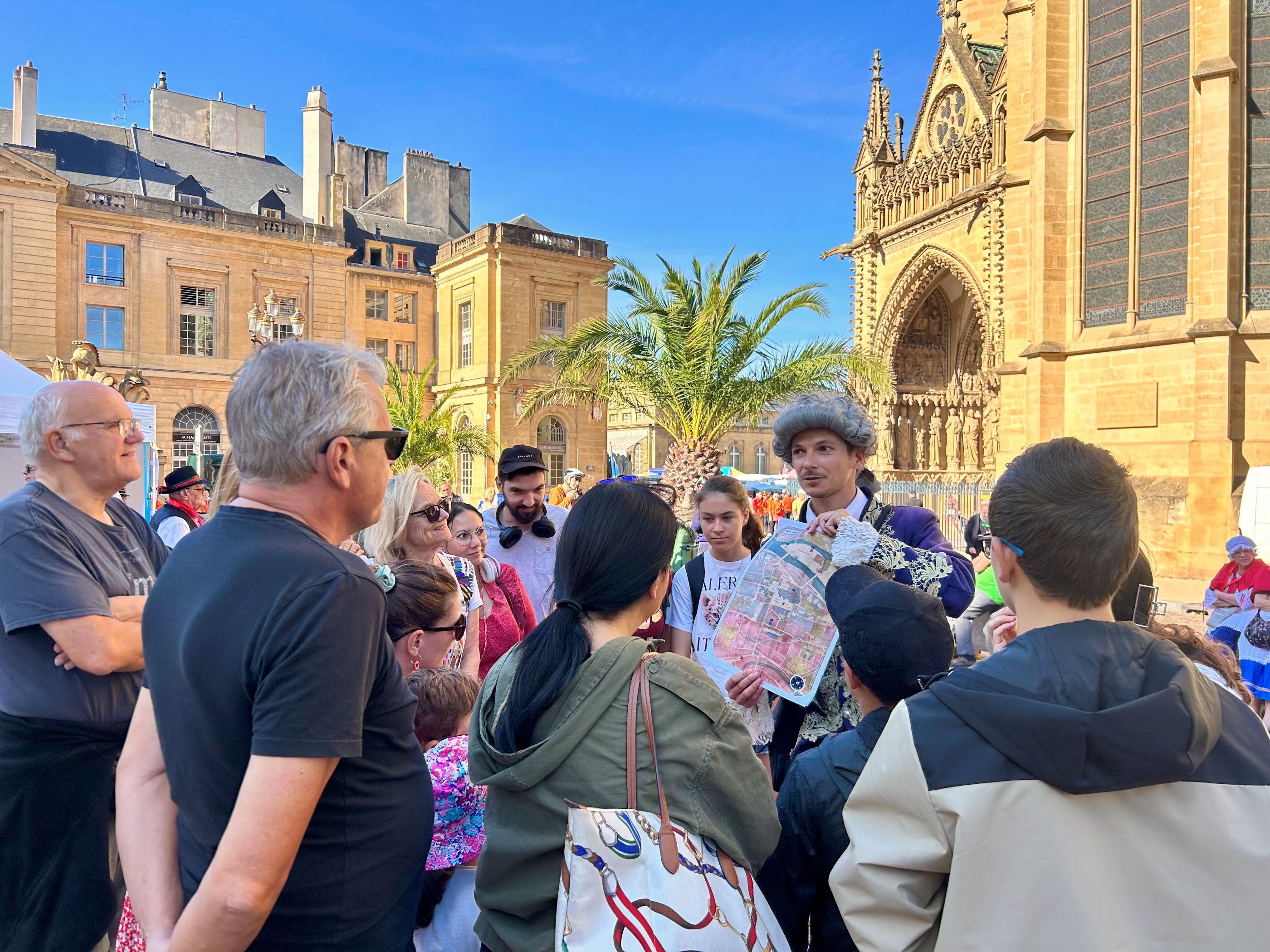 Arpentez le centre historique à l’aide d’un plan ancien et faites face à des énigmes et défis pour découvrir les détails du patrimoine de Metz et leur histoire.