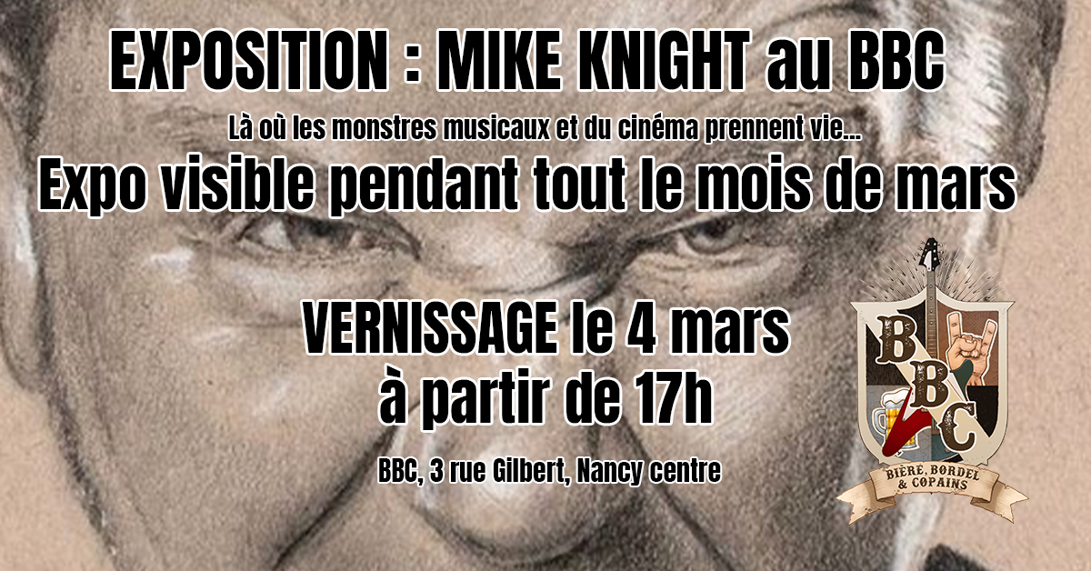 Comme chaque mois, le BBC propose une nouvelle exposition sur ses murs. Ce mois ci, c'est au tour de MIKE KNIGHT de venir nous montrer ses dessins.