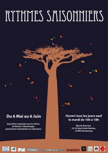 L’exposition Rythmes saisonniers aborde harmonieusement le thème des festivités et célébrations saisonnières à travers le monde, des vendanges et transhumances alsaciennes aux fêtes de semailles des Dogon du Mali, en passant par les sorties de masques des Yoruba du Niger. Les saisons, bien que variant selon les aires géographiques, concernent toutes les sociétés et rythment nos vies mais aussi nos coutumes. Elles sont la genèse de rites qui ont évolué au fil du temps, se détachant parfois de leur fonction première pour en acquérir une autre plus divertissante. Cette exposition a donc pour objectif de faire le lien entre l’Afrique et l’Alsace an de montrer que les saisons font fi des frontières et que les préoccupations agraires, entre autres, sont répandues à travers le globe.