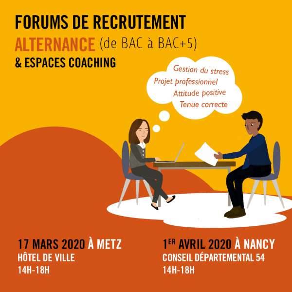 Au programme de ces forums : entreprises et CFA qui proposent des offres de recrutement en alternance, mais aussi un espace coaching (atelier CV, Dress-Code, convaincre en 3 minutes, comment trouver son entreprise ?, etc.).