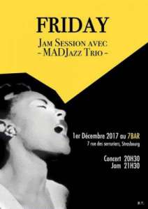 Jam Session hebdomadaire sur le thème du Jazz et plus particulièrement des standards, tous les Vendredis au 7BAR, organisée par le MADJazz TRIO.