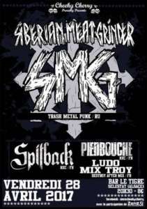 Après des soirées pour les énervés, une soirée pour les TRES énervés ! Prépare tes oreilles car l’association Cheeky Cherry t’a concocté une scène hardcore et trash métal punk de déjanté ! Du gros son jusqu’au bout de la nuit ce sera le vendredi 28 avril au Tigre! Au programme les Russes survoltés de SIBERIAN MEAT GRINDER qui il parait ne font pas dans la dentelle en live et qu’on à hate de voir sur la scene de l’estaminet : ça joue vite, fort, ça arrache et ça fait du bien! Ils seront précédés de la creme du hardcore bien de chez nous : SPITBACK et PIEDBOUCHE. Et pour finir en beauté, retrouvez LUDO MIX-TROY pour un debile destroy after mix à paillettes !