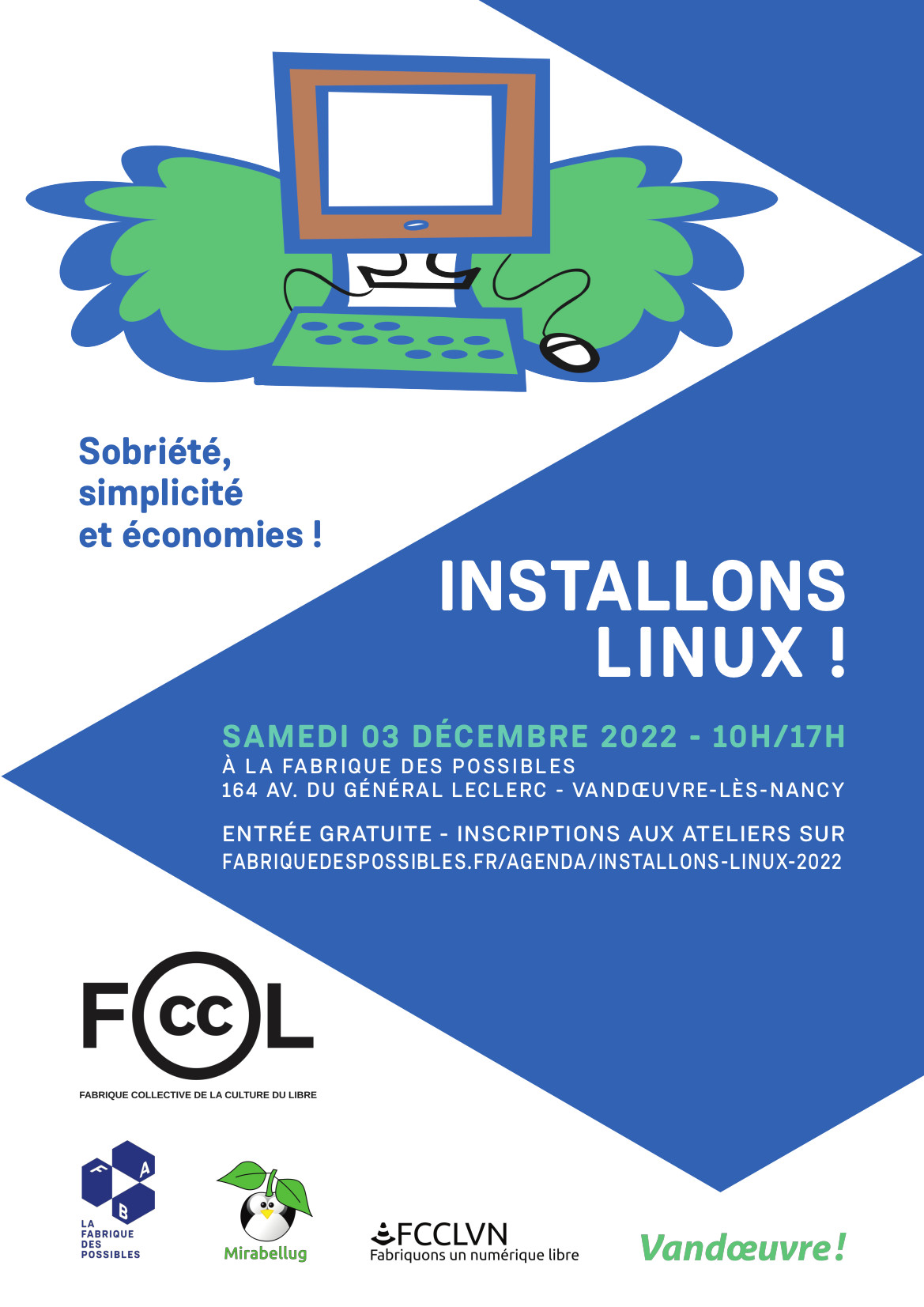 - Atelier aide à l’installation de logiciels libres (sur Linux, Windows et MacOS), toute la journée