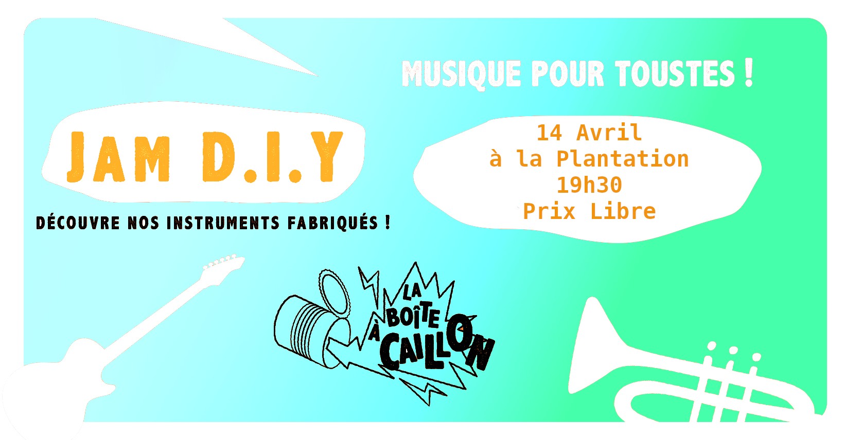 Un petit concert improvisé de l'asso suivie d'une Jam orchestrable avec les instruments DIY de La Boite A Caillon + des instruments traditionnels + open Mic.