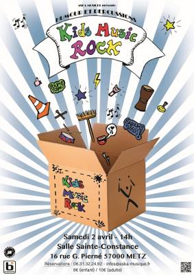 Rendez-vous le samedi 2 avril à 14h à la salle Sainte-Constance de Metz pour « Kids Music Rock » ! , la dernière création humoristico-percussionistique d’ASKA MUSIQUE !