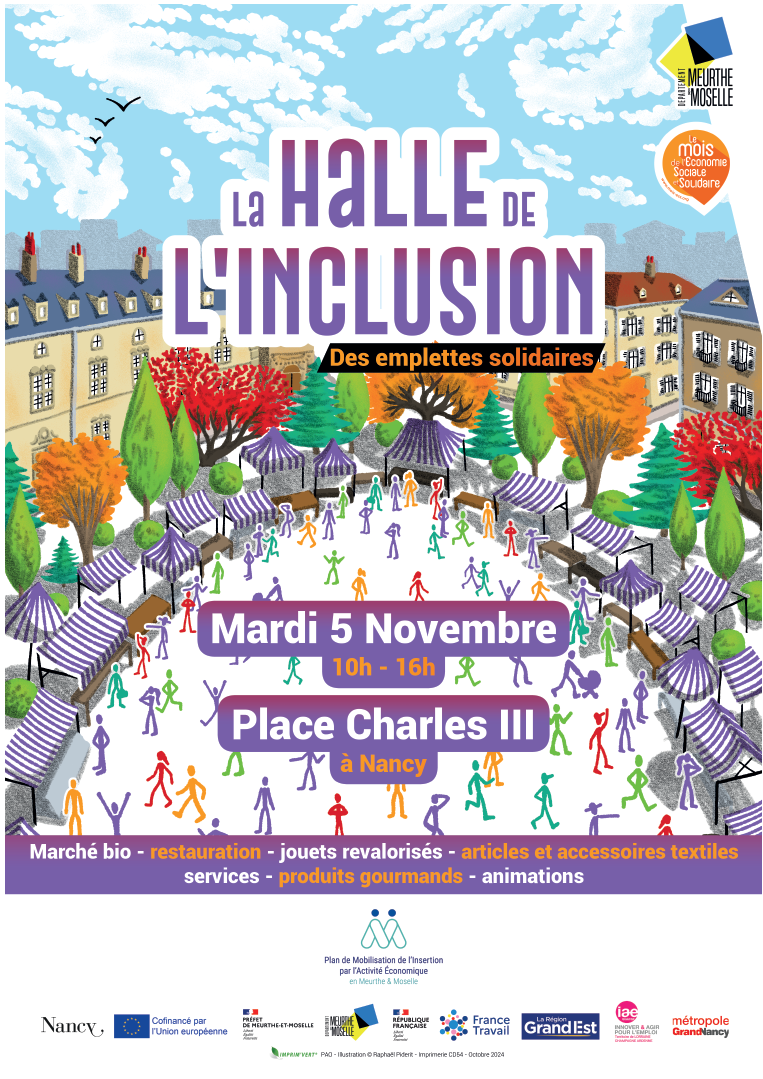 Dans le cadre du Mois de l’Economie Solidaire et du Plan de Mobilisation de l’Insertion par l’Activité Economique en Meurthe-et-Moselle, nous vous convions à déambuler et découvrir les stands de nos partenaires de l’IAE (insertion par l'activité économique) :