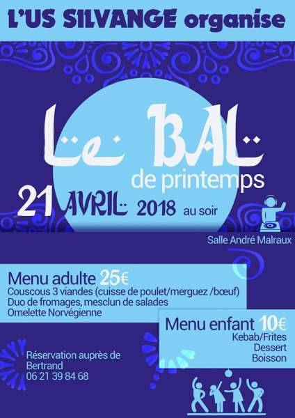 Pour passer tous ensemble une bonne soirée, l’US SILVANGE vous invite à sont bal de printemps.