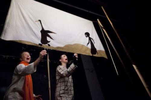 Un canard rencontre la mort et décide de lui accorder sa confiance. Contre toute attente les deux personnages s’apprivoisent et vivent peut-être les meilleurs moments de leurs existences. Adaptation du livre de l’illustrateur allemand Wolf Erlbruch, Le Canard, la Mort et la Tulipe raconte la naissance d’une curieuse amitié. Une réflexion poétique sur l’apprivoisement de la mort et la vulnérabilité de la vie. Le public est accueilli en chanson et au son d’un violon dans un décor fidèle à l’univers graphique de l’auteur. Marionnettes à tiges, ombres portées et projections permettent aux deux interprètes slovènes de mettre à profit leur art de la manipulation pour donner vie à des personnages particulièrement attachants.