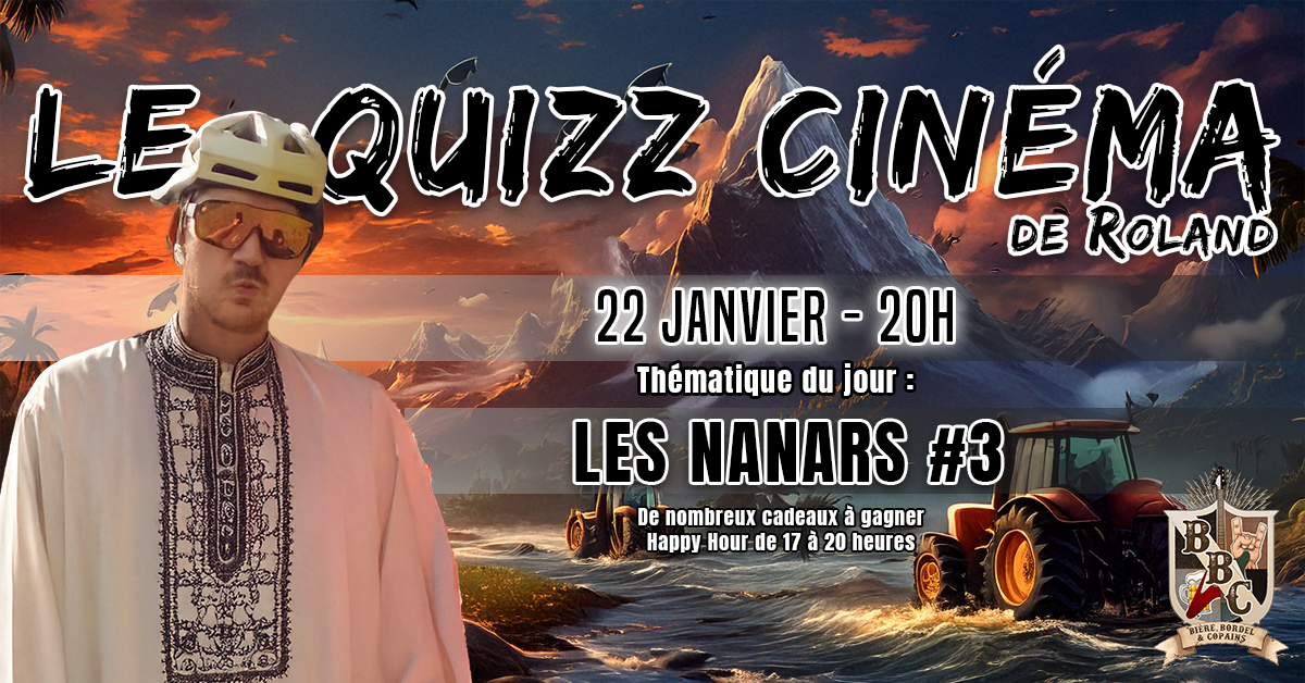 ?? Le mercredi 22 janvier à 20 heures, le BBC vous offre une nouvelle dose de films "so bad it's good" avec une soirée ciné-quiz spéciale Nanars #3 ! Préparez-vous à plonger dans l'univers des plus grands "accidents" du cinéma, ces films tellement mauvais qu'ils en deviennent cultes.