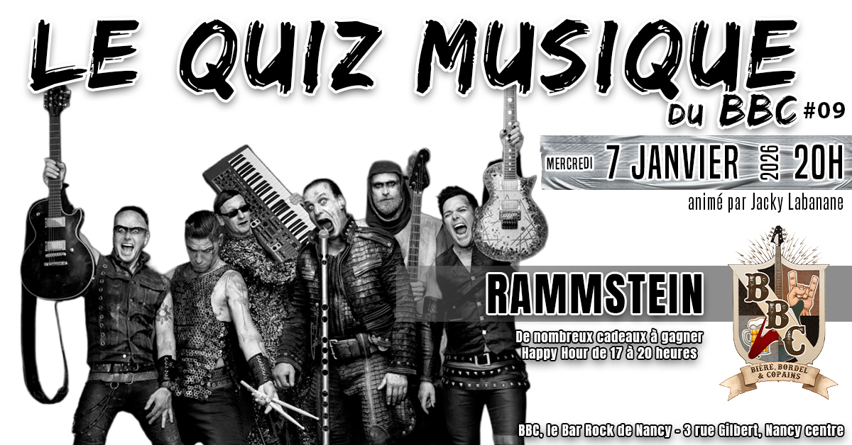 ⚡ Mercredi 7 janvier 2026 à 20h, le BBC prend feu (promis, on a prévu l’extincteur) pour un quiz dédié aux maîtres de la pyrotechnie. Rammstein, c’est autant des riffs lourds que des shows capables de transformer un stade en barbecue géant. Prépare-toi à au moins 15 questions qui risquent de chauffer plus que leurs lance-flammes.