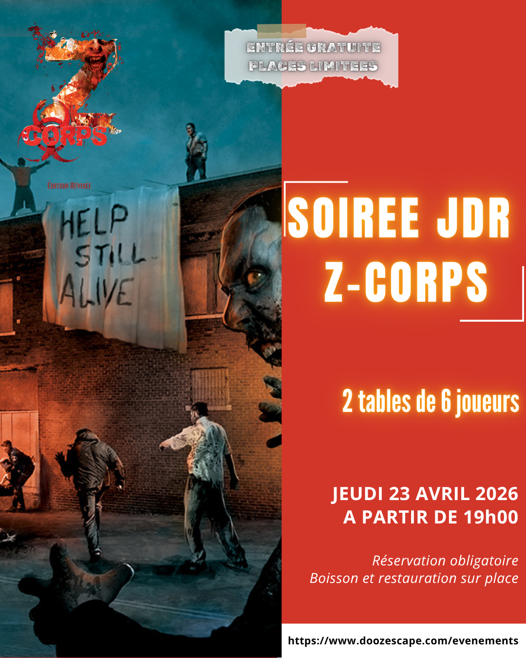 Le Malleus Maleficarum vous propose une soirée d’initiation à Z-Corps, un jeu de rôle où tension, survie, entraide et chaos font rarement bon ménage… mais toujours de très bons souvenirs de table.