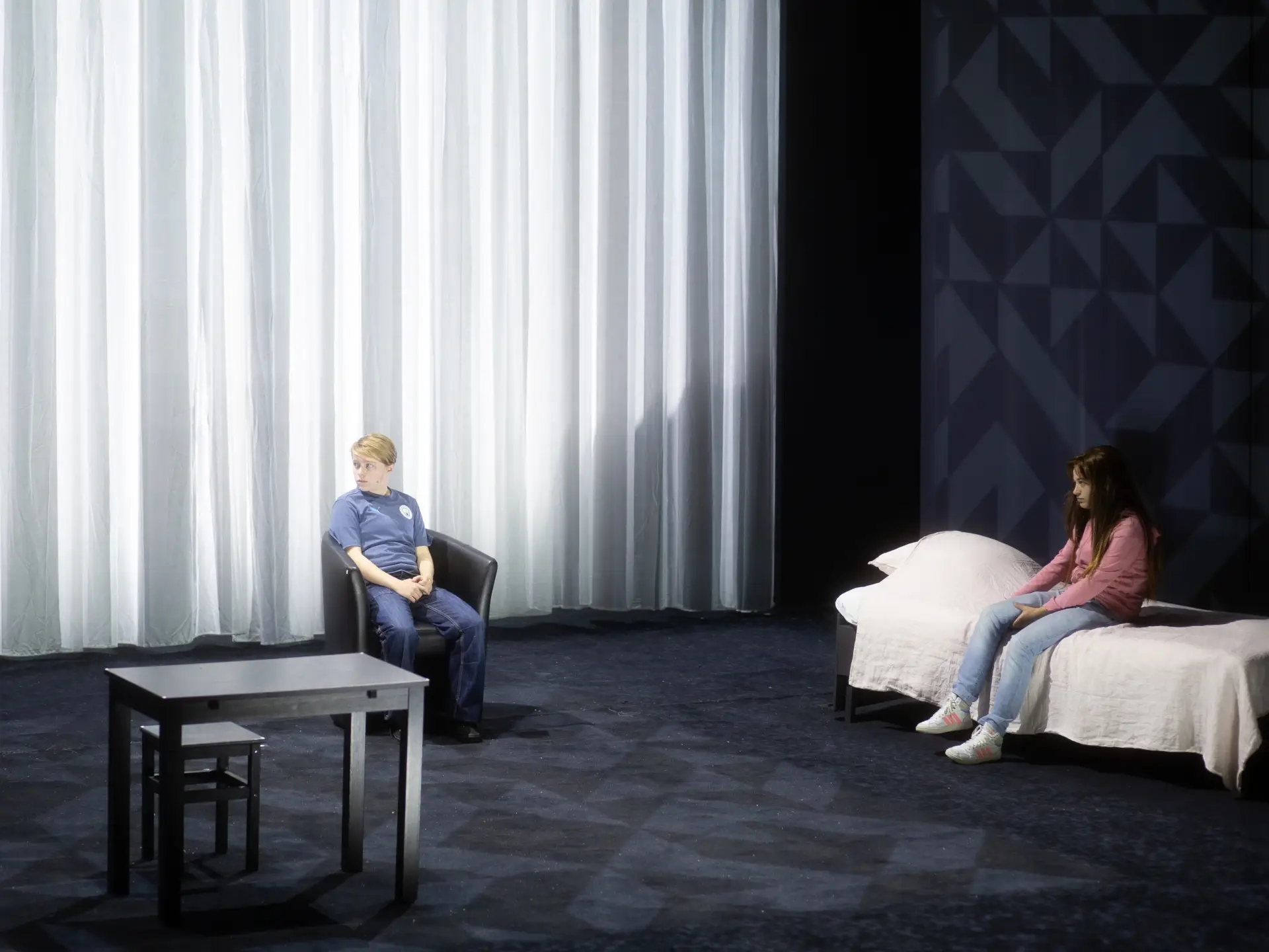 Quels pouvoirs l’enfance peut-elle opposer à la parole des adultes ? Alors qu’il déconstruisait les codes du merveilleux dans Cendrillon, Joël Pommerat a pour ambition de les prendre au premier degré dans cette nouvelle création. À la manière d’un conte, il imagine la rencontre de deux très jeunes filles, obligées de déjouer les lois du monde réel afin de s’affranchir de celles des adultes et nouer un pacte d’amitié qu’elles veulent indestructible. L’histoire se raconte en même temps qu’elle se vit dans la forme de ce « théâtre roman ». Pour Joël Pommerat, la mise en scène et le texte s’élaborent de manière concomitante avec les répétitions. Les Petites Filles modernes poursuit avec malice son exploration des contes.