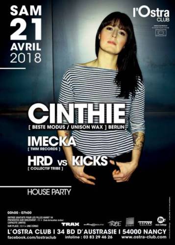 En novembre dernier vous aviez kiffé la soirée house avec Leo Pol et Ben Vedren alors on s’est dit qu’on allait remettre çà le samedi 21 avril en invitant cette fois-ci Cinthie la dj / productrice allemande fondatrice entre autres des labels house Beste Modus / Unison Wax basés à Berlin.