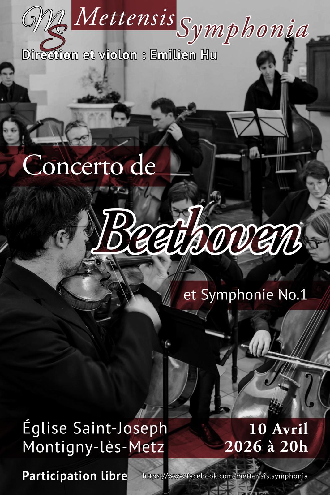 L'orchestre Mettensis Symphonia, l'un des plus anciens orchestres amateurs messin, joue Beethoven : symphonie n°1 et concerto pour violon. Direction et violon : Emilien Hu
