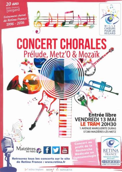Concert chorales avec Prélude, Metz’O et Mozaïk à l’occasion des 20 ans de Retina France.