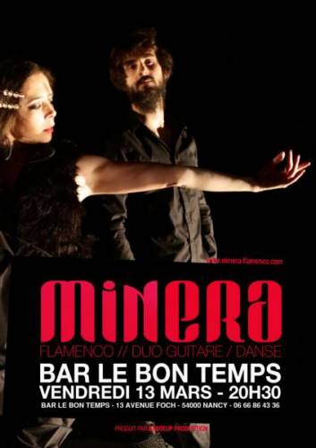 Minera c’est la rencontre de 2 artistes issus de différents horizons. La danse, la guitare, sont complices pour bousculer les codes traditionnels et proposer un flamenco qui flirte avec le jazz, les rythmiques cubaines, le rock et la danse contemporaine. Après s’être fait connaître dans le Grand-Est (foire éco-bio d’Alsace, au Grès du Jazz), Minera développe sa dimension nationale avec notamment une date dans la programmation officielle du prestigieux festival Arte Flamenco.