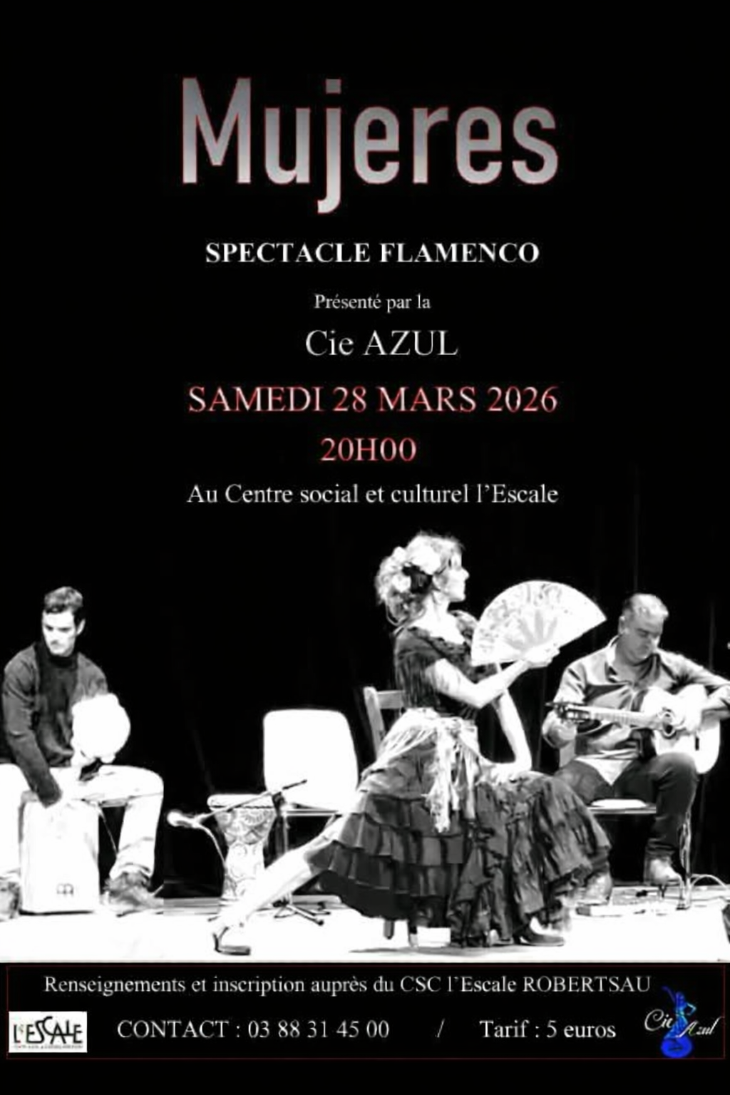 Dans le cadre de la Journée internationale des femmes et de leurs droits, le Centre socioculturel l’Escale accueille Sophia K., Kader Fahem, Isra Ozsalar Tekin, Raduoan Arfa et Alexis Botella, pour un spectacle de flamenco unique au titre évocateur : Mujeres – « femmes », en français.
