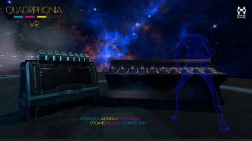 Quadriphonia VR immerge le public dans un monde formé par des images en réalité virtuelle et un son à 360°, où les réalités se mélangent au point de se confondre. Le son et les artistes interagissent sur les images virtuelles alors que le concert se déroule dans un jeu vidéo VR (réalité virtuelle) projeté sur des écrans qui entourent le public. Celui-ci arrivera-t-il à décrypter le message que Quadriman est venu adresser aux humains ?