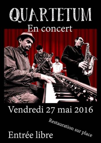 le groupe Quartetum est composé de : David pianiste, Yves sax, Jacques à la basse et Thomas à la batterie.