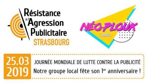 À l’occasion de la journée mondiale antipub, nous vous proposons de (re)découvrir notre groupe local strasbourgeois de Résistance à l’Agression Publicitaire (RAP), et de fêter ensemble notre premier anniversaire.