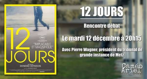 Le titre 12 Jours fait référence au délai avant lequel les personnes hospitalisées en psychiatrie sans leur consentement sont présentées en audience. D’un côté un juge, de l’autre un patient, entre eux naît un dialogue sur le sens du mot liberté et de la vie.
