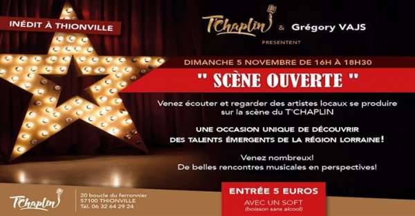 Vous aimez la musique! Vous souhaitez découvrir des chanteurs ou groupes de la région Lorraine! Venez vite regarder et écouter les artistes qui se produiront sur la scène ouverte du T’CHAPLIN! Un rendez-vous incontournable à Thionville!