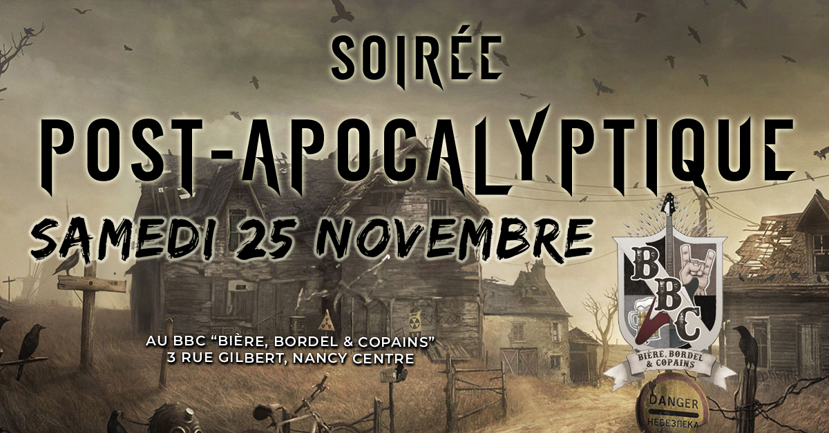 Ce samedi, c'est l'apocalypse qui s'annonce au BBC. Sortez vos Mad Max et vos Tank Girls, et venez rejoindre les survivants de l'apocalypse dans le bunker du BBC.