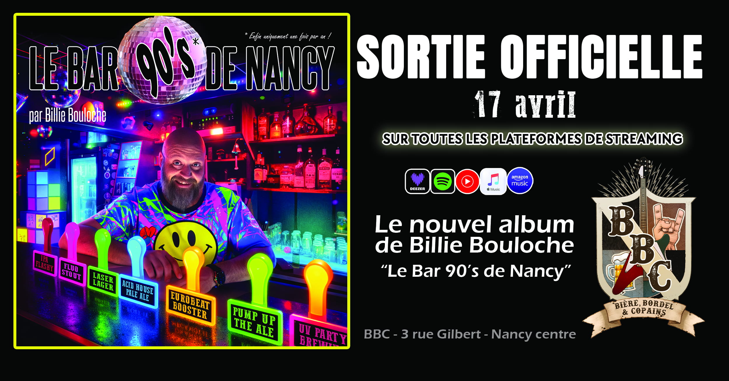 Le nouvel album de Billie Bouloche, Le Bar 90’s de Nancy, débarque officiellement sur toutes les plateformes de streaming.
