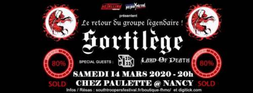 Le retour tant attendu de SORTILEGE avec leur chanteur emblématique Zouille. Il s’agira en plus de la toute 1ère venue du groupe dans la région de Nancy. Un concert immanquable, avec cerises sur le gâteau 2 très bons groupes en ouverture : les belges de SPEED QUEEN et les lorrains de LARD OF DEATH.
