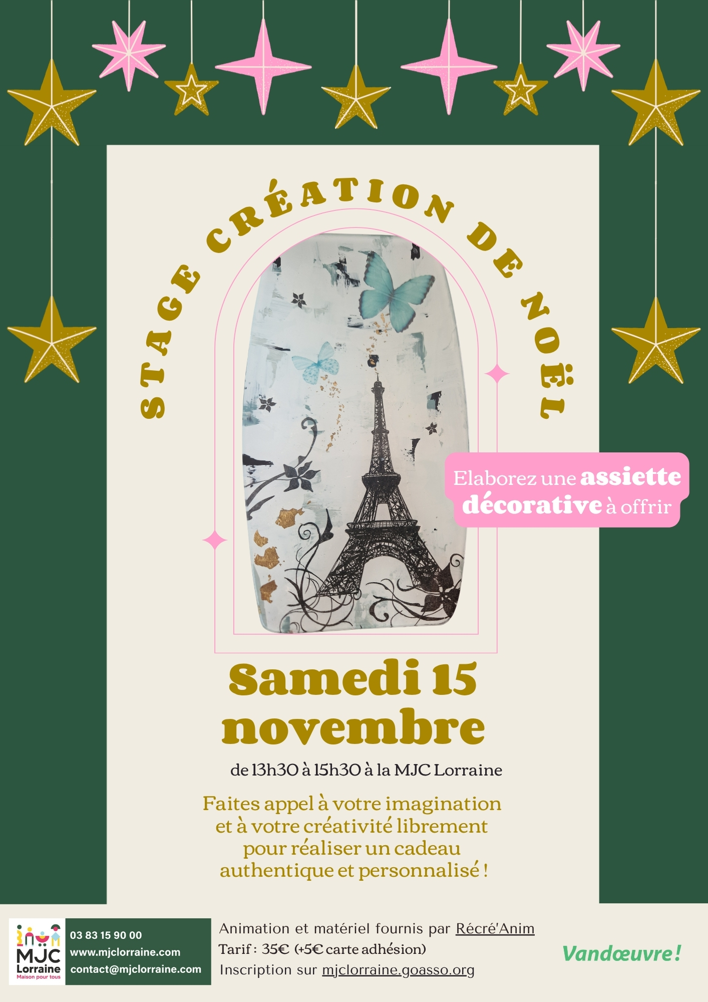 Eveillez votre créativité en confectionnant une assiette décorative samedi 15 novembre à la MJC Lorraine, de 13h30 à 15h30.