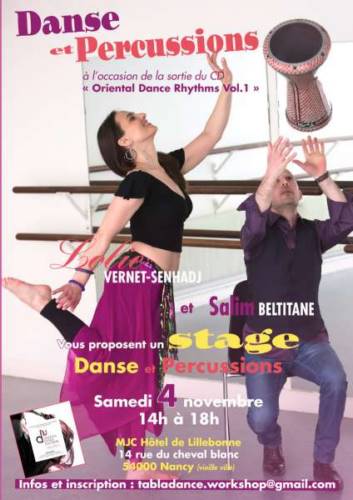 Salim Beltitane et Lolie Vernet-Senhadj vous proposent un stage de danse avec percussions à l’occasion de la sortie du CD "Oriental Dance Rhythms Vol.1".