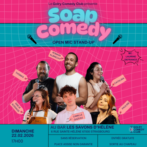 Le Soap Comedy, c'est l'open mic de stand-up du Golry Comedy Club et des Savons d'Hélène, un rendez-vous stand up dominical qui dure depuis plus de 3 ans !