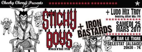 Tu veux du vrai rock, du bon, du gras qui sent bon le cuir et la graisse de moto - Ça se passe samedi 25 mars au Tigre à Sélestat ! On a le plaisir de recevoir les STICKY BOYS enfants spiritueux d’AC/DC et des RAMONES !