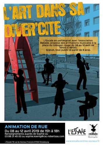 Rendez-vous sur la place du toboggan rouge située au cœur de la Cité de l’Ill, pour vous offrir la possibilité de vous initier à différents instruments de musique et pour chanter et danser sur des musiques populaires qui ont traversé les frontières…