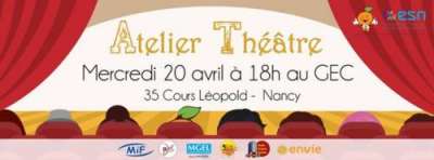 L’atelier théâtre sera de 18h à 20h au GEC. C’est une activité gratuite mais limitée à 15 places. Inscris-toi vite en cliquant sur le lien ci-dessous :