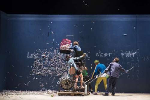 Ce saccage en règle, allié à un détournement d’objets et d’idées aussi drôle qu’insolent, souffle un vent de liberté porté par trois comédiens. Ils entrent dans un état d’esprit particulier : celui du combattant de l’art, prêt à affronter l’inconnu et le chaos, en quête d’un acte de création. Armés de bombes de peinture, de marteaux, de machineries, de mannequins et d’outils en tous genres, ils vont tout mettre à terre.