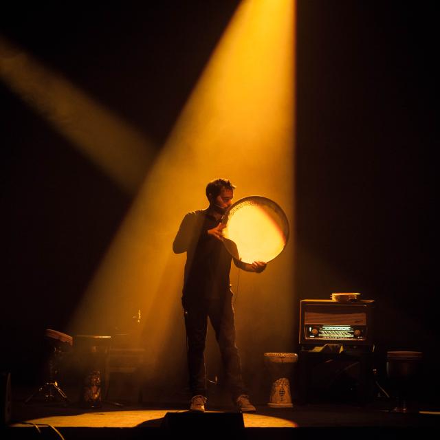 Le décor est sobre et privilégie une forme d'intimité qui reflète les face-à-face avec mes différents maîtres en percussions et tous ces moments à observer, écouter et imiter pour pouvoir apprendre. Ce vieux transistor qui m'accompagne sur scène est l’antithèse des écrans qui ont envahi nos vies. Quand les écrans imposent des images, la radio diffuse des sons et laisse ensuite l’imagination faire son chemin. Ces enregistrements personnels sont aussi les garants d'une mémoire parfois vacillante et qui ont figé dans le temps des moments que j'ai vécus. »
