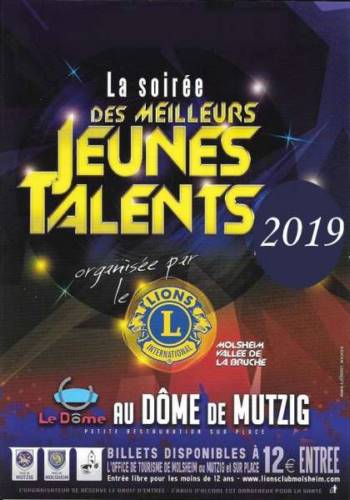 Fort du succès des 2 précédentes éditions en 2016 et en 2017, le Lions Club de Molsheim-Vallée de la Bruche organise le samedi 27 avril 2019 à 20H au Dôme de MUTZIG la troisième édition de sa Soirée des Meilleurs Jeunes Talents.