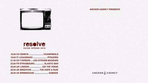 Atteignant d’incroyables résultats avec leur premier EP Rêverie sorti en octobre 2017, Resolve ont déjà réalisé une série de trois petites tournées entre octobre et décembre 2017 à travers l’Europe et le Royaume-Uni, reçu la promotion de médias tels que Alternative Press, New Noise Magazine, Impericon France, Spotify et plus encore, joué au Longlive Festival à Lyon (têtes d’affiches : Architects et Every Time I Die) et atteint les places #1 Metal, #5 Rock et #88 Album sur les charts iTunes France. Le dernier single de Resolve Navel-Gazing est passé en avant-première sur l’émission Fresh Blood de Alex Baker au Royaume-Uni et a fait l’objet d’un article dans Metal Hammer. Le groupe continue de promouvoir sa première sortie tout en préparant de nouvelles tournées pour 2018.