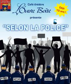 « Selon la police » c’est notre époque regardée par le citoyen, mais aussi par les autorités qui n’y voient jamais la même chose. « Selon la police » c’est un incroyable écart dans le nombre de participants à une manifestation, ce sont des choses toutes simples qui doivent se dire de manière très compliquée, ce sont des sketches et des chansons à l’ironie de l’Ouvre Boîte. Une fraîcheur de ton, et une acidité rafraîchissante pour évoquer avec humour le « selon la police » et « selon les organisateurs » !