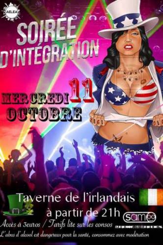 Venez passez une bonne soirée à la Taverne de l’Irlandais le mercredi 11 octobre à partir de 21h pour l’intégration LEA !