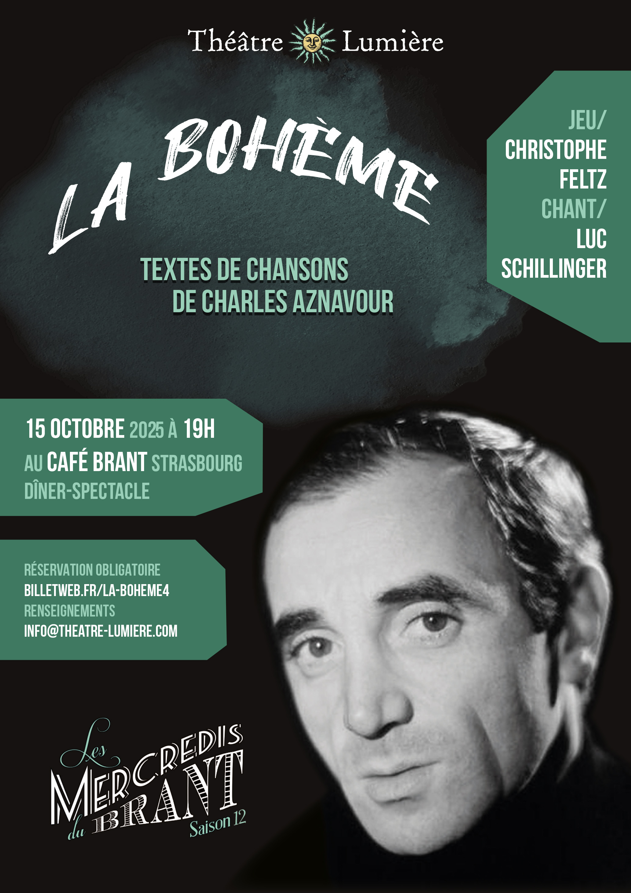 Spectacle de théâtre musical « La Bohème » d’après Charles Aznavour avec Christophe Feltz (jeu) et Luc Schillinger (guitare & chant) le mercredi 15