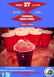 Oyé Oyé Marcassins, c’est la rentrée et pour cela rien de mieux que de se donner rendez-vous pour notre première soirée Beer Pong de l’année !!!